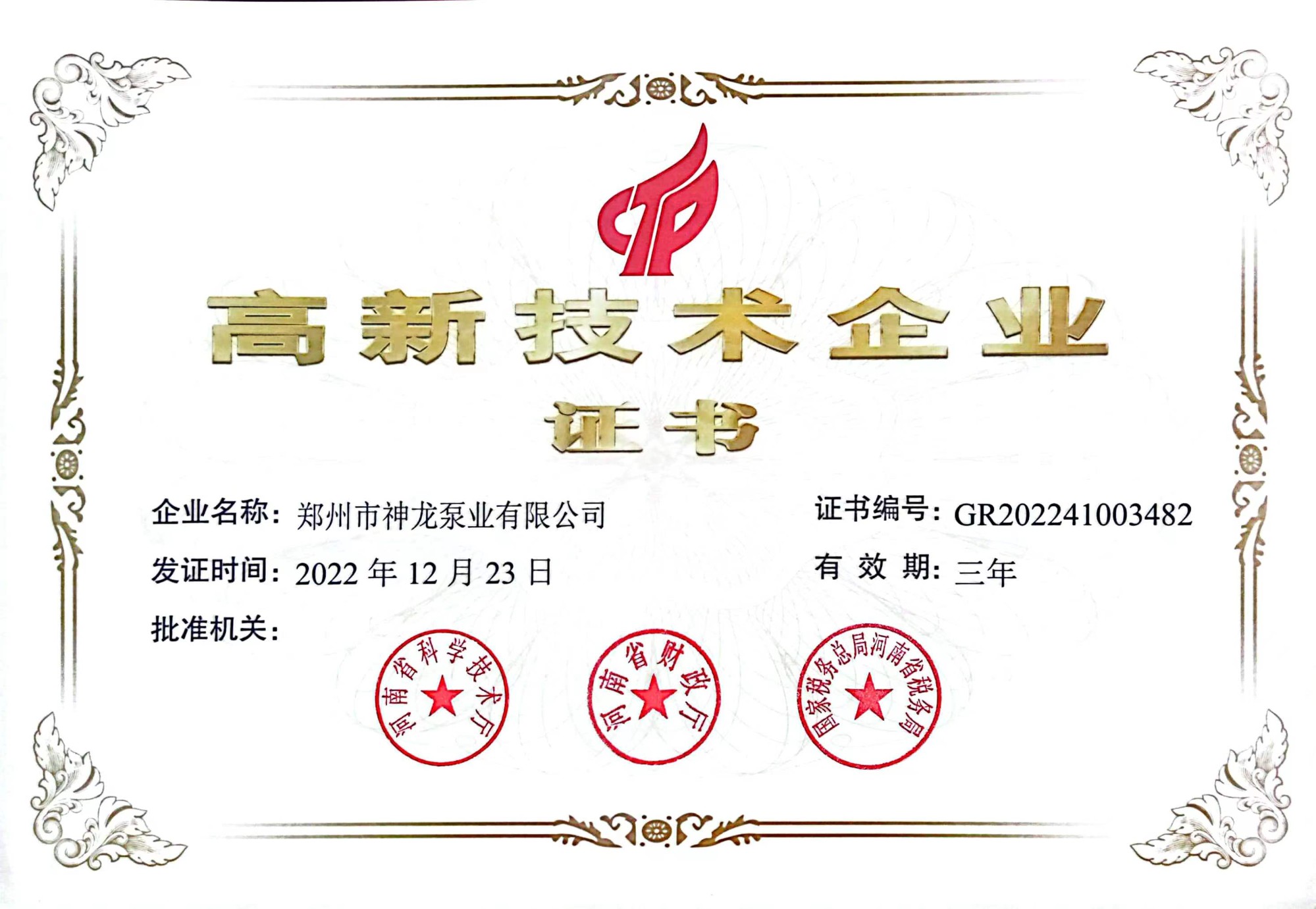 高新技術企業(yè)證書